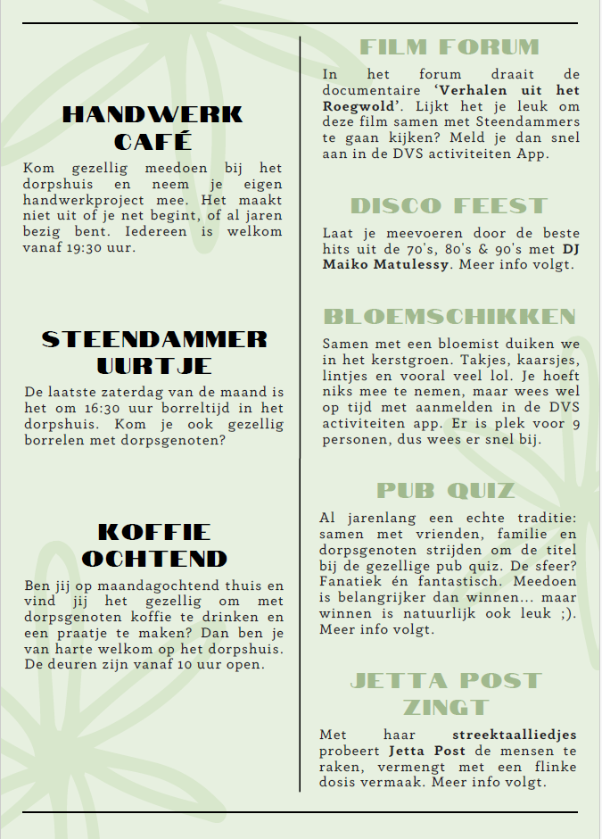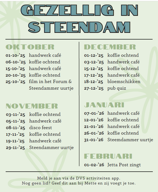 25 oktober, tijdens Steendammer uurtje: Film in het Forum.... een documentaire "Verhalen uit het ?Roegwold". Lijkt het je leuk om deze film samen met Steendammers te gaan kijken? Meld je dan in de DVS activiteiten app.