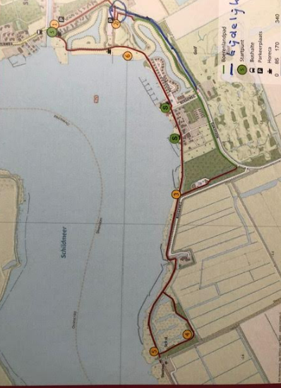 planken kunnen wel wat glad zijn bij nattigheid. Er liggen gewijzigde folders bij Kaap Steendam, waarbij de verandering in blauw is aangegeven. Veel plezier bij dit ongeveer 6 km lange Ommetje.